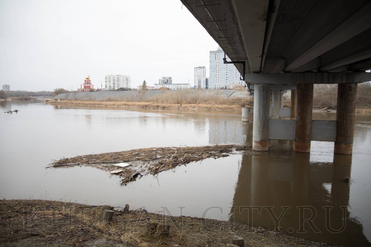 В Кургане провели расчистку Тобола под Кировским мостом
